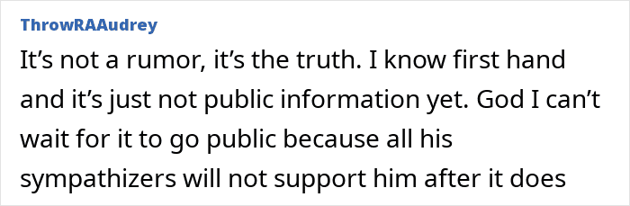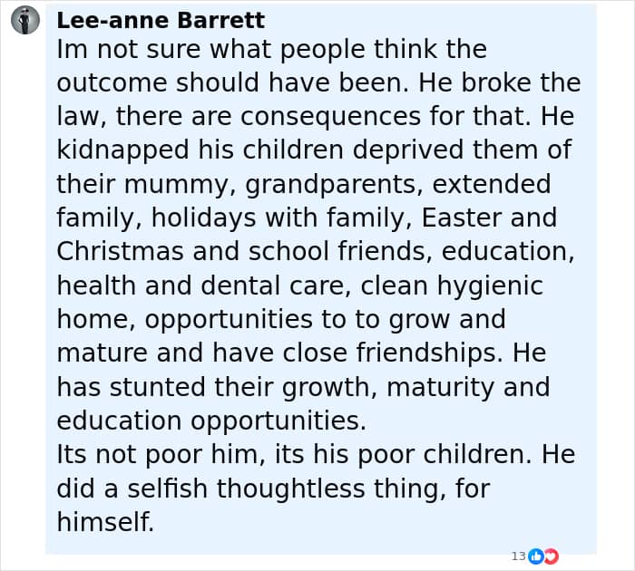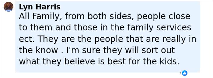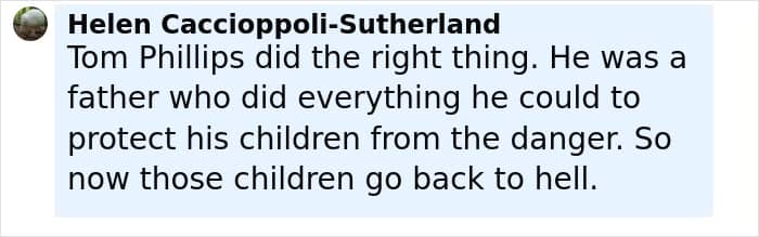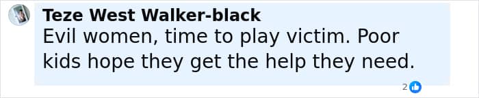Screenshot of a social media comment discussing supporters amid the story of mom of kids who vanished into wilderness.