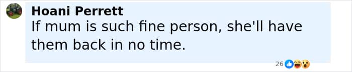 Screenshot of a social media comment about the mom of kids who vanished into the wilderness.
