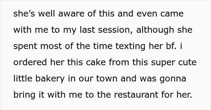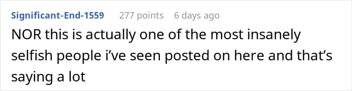 Comment discussing a friend’s selfish behavior regarding birthday vs. chemo priorities.