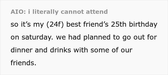 Unfortunately, there will sometimes be extenuating circumstances that make it impossible for friends to be on call. But does that mean the entire relationship should be thrown away? One woman was recently called selfish for skipping her best friend’s birthday for health reasons. Below, you’ll find the post she made on Reddit detailing the situation, as well as some of the replies readers shared.