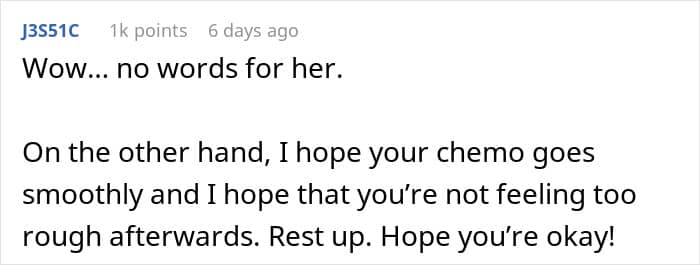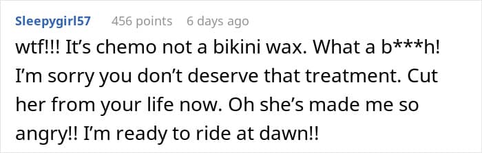 Reddit comment questioning the audacity of treating someone on chemo poorly.