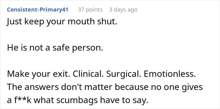 “The strongest bonds between friends, lovers, family, and society more generally are all formed on the foundation of trust,” Dr. Talley wrote. However, for the OP, the foundation was most likely shattered irreparably. In the comments under her post, a netizen suggested asking herself what if it was their child in need of help, waiting helplessly for the OP’s husband to come, and that seemingly helped her see things more clearly.