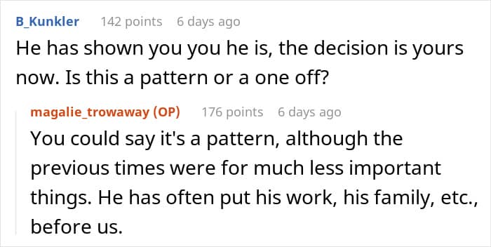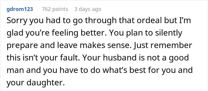 “The strongest bonds between friends, lovers, family, and society more generally are all formed on the foundation of trust,” Dr. Talley wrote. However, for the OP, the foundation was most likely shattered irreparably. In the comments under her post, a netizen suggested asking herself what if it was their child in need of help, waiting helplessly for the OP’s husband to come, and that seemingly helped her see things more clearly.
