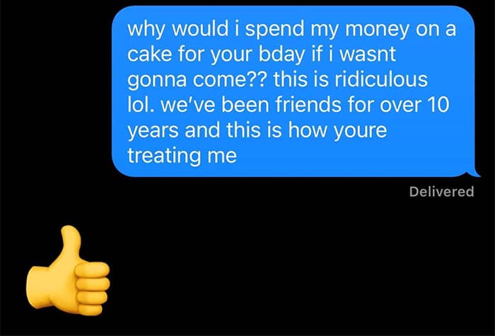 But her best friend didn’t think that was a valid excuse for missing her birthday party