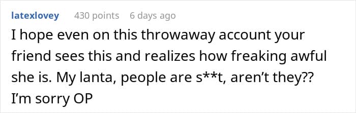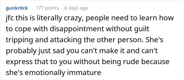 Readers were appalled by the friend’s behavior and assured the author that she shouldn’t feel guilty about missing the party