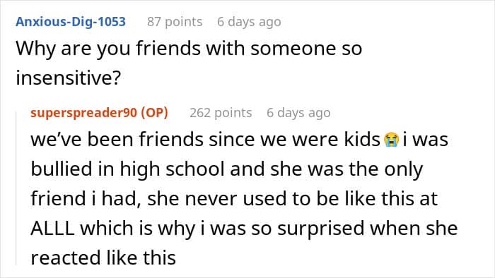 Unfortunately, there will sometimes be extenuating circumstances that make it impossible for friends to be on call. But does that mean the entire relationship should be thrown away? One woman was recently called selfish for skipping her best friend’s birthday for health reasons. Below, you’ll find the post she made on Reddit detailing the situation, as well as some of the replies readers shared.