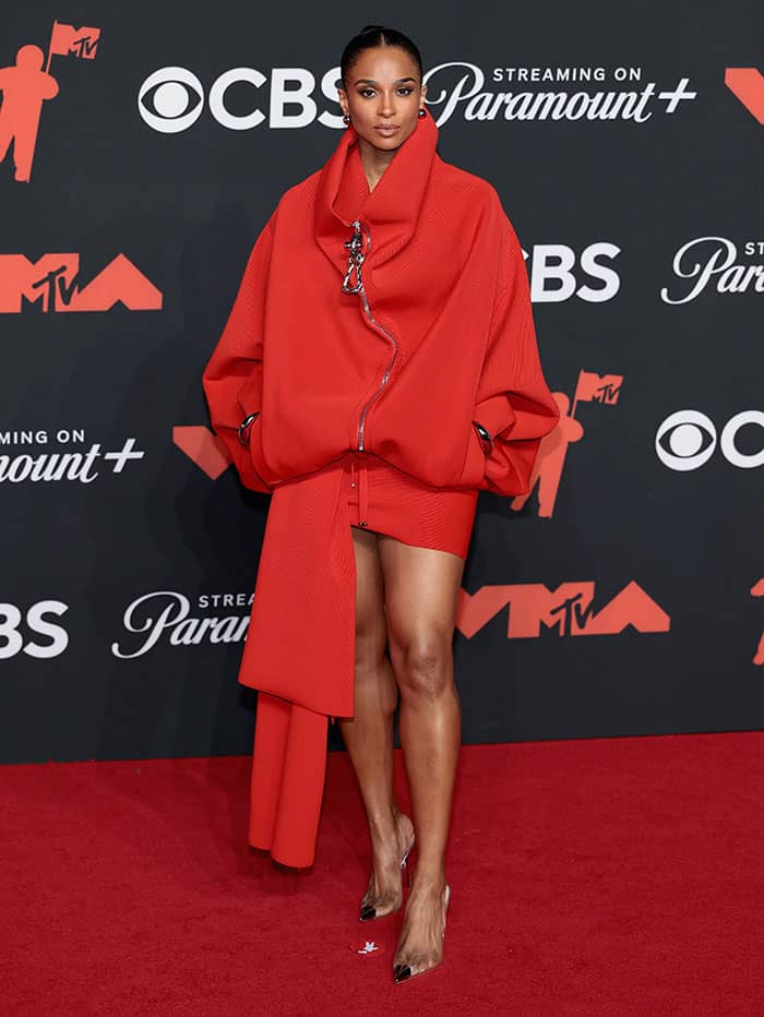 “It’s full of detail, especially with the flames in the front, so we wanted a hairstyle that would complement it without competing,” celeb hairstylist Sienree Du told Cosmopolitan. “We went with her signature slicked-back ponytail to keep the focus on the outfit while adding a touch of drama in the back.”
