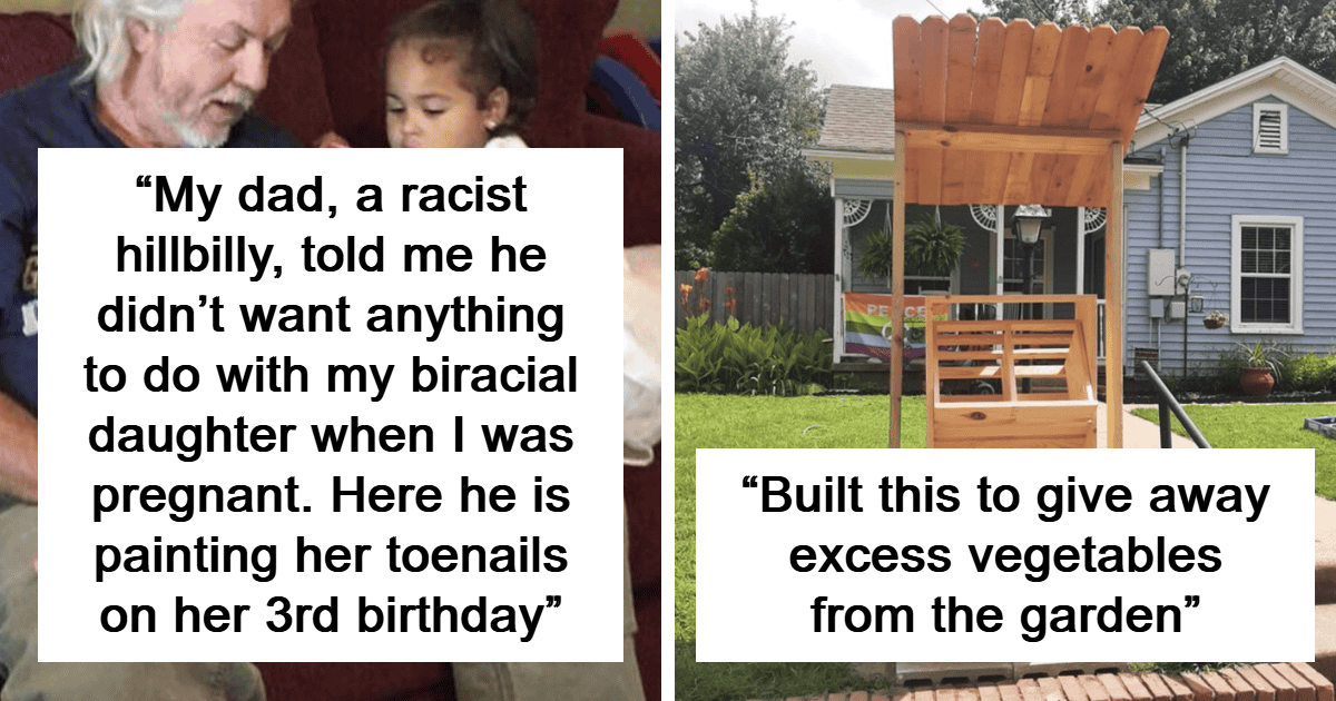 “My dad, a racist hillbilly, told me he didn’t want anything to do with my biracial daughter when I was pregnant. Here he is painting her toenails on her 3rd birthday. Proof people can change.”