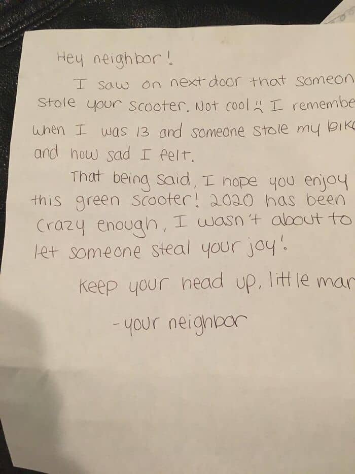 #38 Someone Stole A Kid’s Razor Scooter In Our Neighborhood. An Anonymous Neighbor Decided To Restore Some Joy Back For The Kid