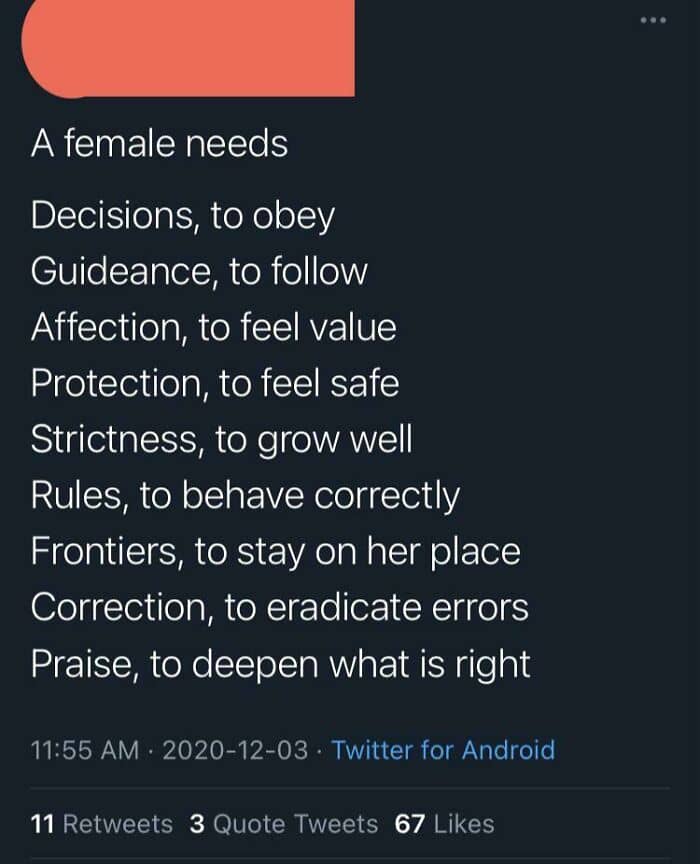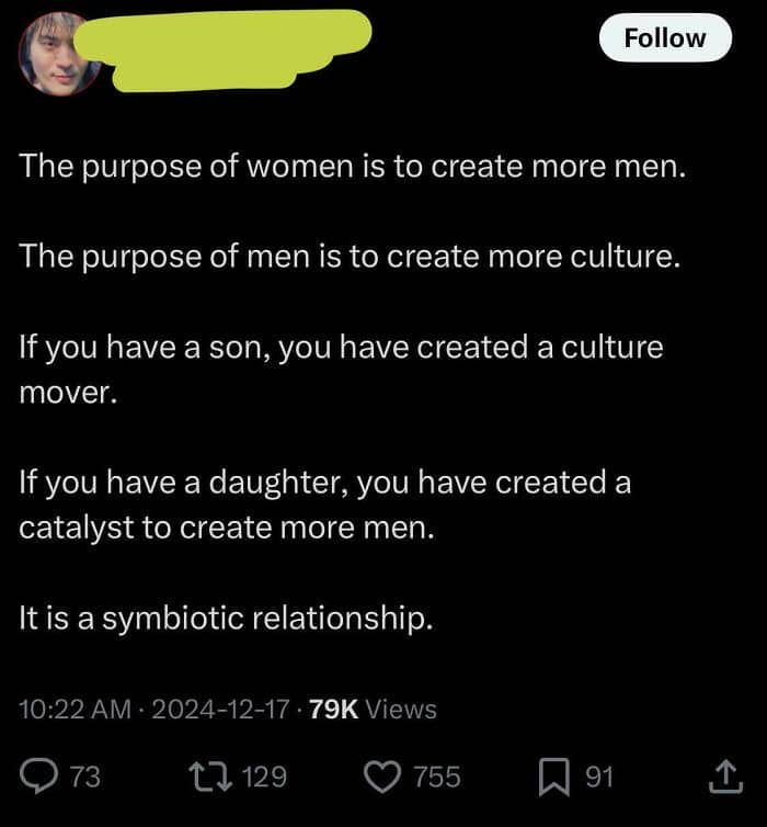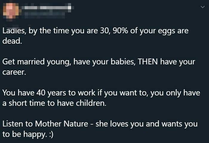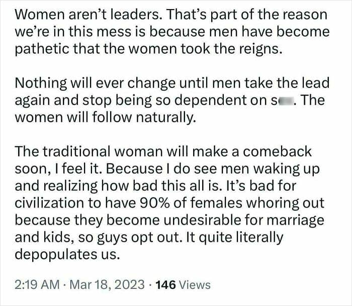 Now, let’s get one thing clear. There is absolutely nothing wrong with wanting to have a traditional lifestyle, if that’s truly what you dream of. Getting married, having children and becoming a stay-at-home mother sounds wonderful to some people. And that’s great if that’s what you choose! But in recent years, right wingers have made the “trad wife” lifestyle so popular on social media that it seems like many of them don’t actually have a choice. Their husbands expect them to be homemakers because they’re women, which can be avery slippery slope.