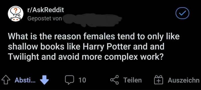 #44 Found On Another Sub, Women Only Like Harry Potter And Twilight Apparently