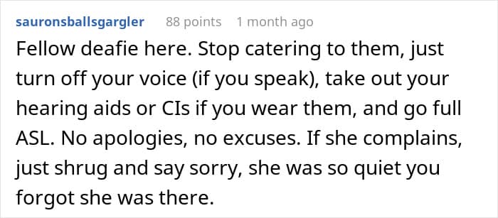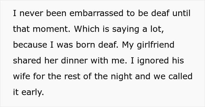 Unfortunately, this woman didn’t put any effort into communicating with her husband’s best friend, who happened to be Deaf. Once, she even managed to exclude him from dinner because she thought he was being ‘so quiet.’ This embarrassed and offended the friend so much that he considered cutting ties with the couple.
