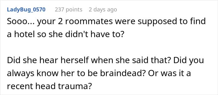 But the friend expected one of her roommates to give up their room for her