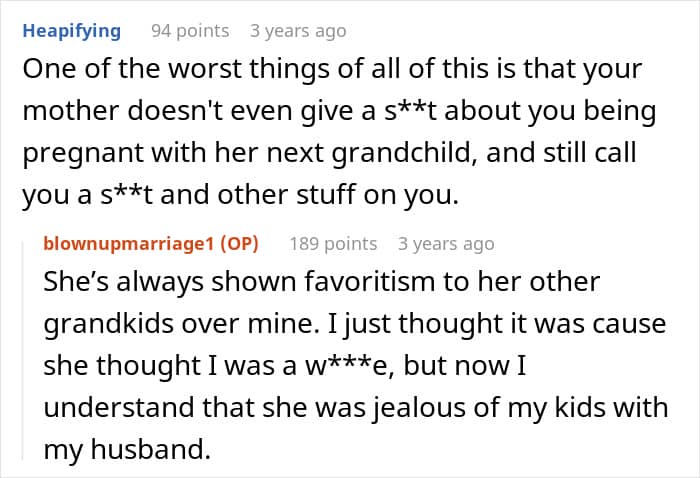 The mother in this story did both: she looked down on her daughter and called her names for becoming pregnant at 17 out of wedlock. “My other sisters and I have always taken the brunt of criticism and shame from her and my mom for being rebellious,” the woman wrote in a comment.