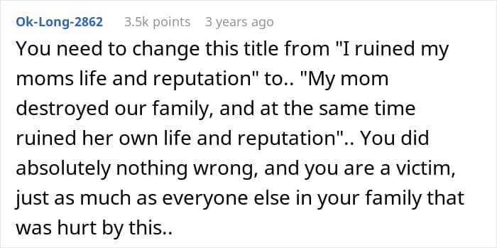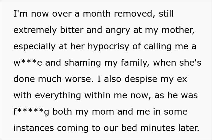 Some commenters alluded to the mother possibly having narcissistic traits. How else would you explain a mother doing such a terrible thing to her own daughter? Aside from the horrible cheating secret, the woman also mentioned other traits that possibly point to her being toxic and a narcissist.