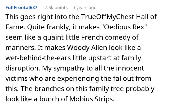 But this husband probably outdid all cheaters: he was unfaithful with his wife’s mother. What’s more, the affair was going on for more than 22 years, and if not for a happenstance, the wife might still be in the dark. Buckle in, Pandas, because this story is pretty wild: there’s narcissist mothers, DNA tests, uncles-turned-siblings, and reactions that may defy all common sense.