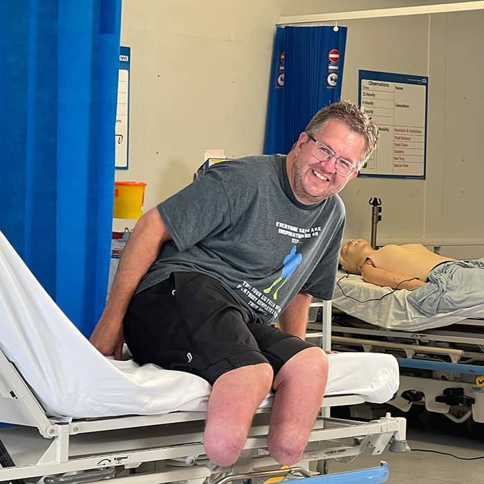 Neil embraced his life with prosthetics and went back to work less than six months after his legs were removed.