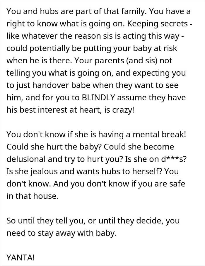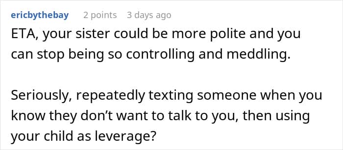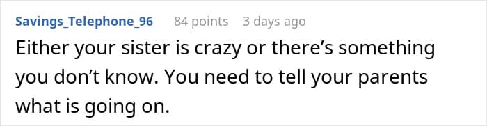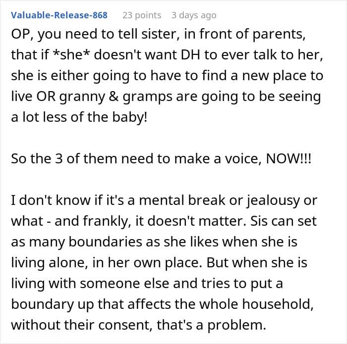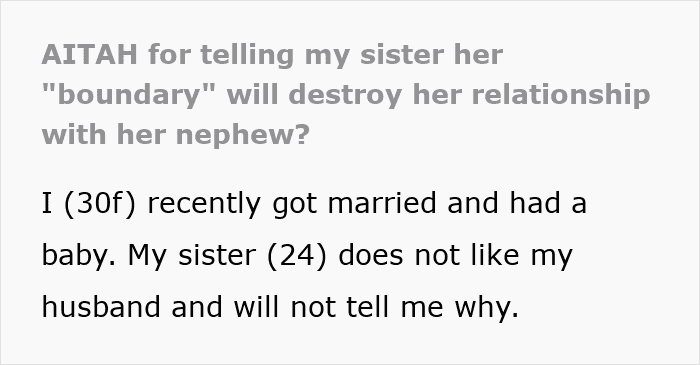 This woman also wondered what might have happened with her husband and sister, as the sibling, out of the blue, demanded to draw a boundary between them and never speak to him again. She tried to understand her sister’s sudden hatred for her spouse, but she refused to talk about it and asked to respect her decision.