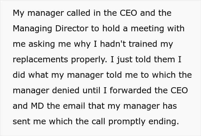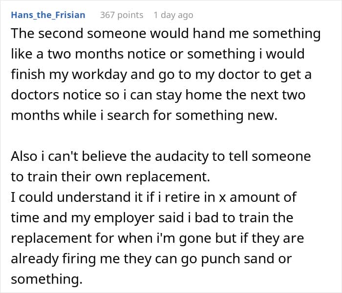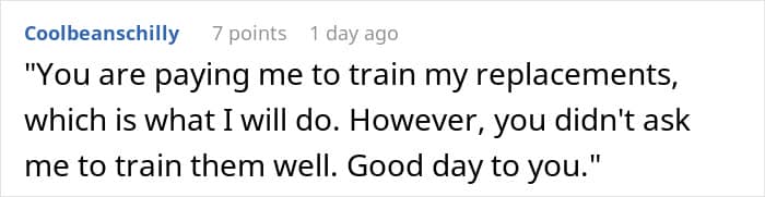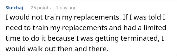 After returning from their well-deserved PTO, they found two interns—who were secretly hired while the worker was gone—to replace them. Even more, the Redditor was told to train them.