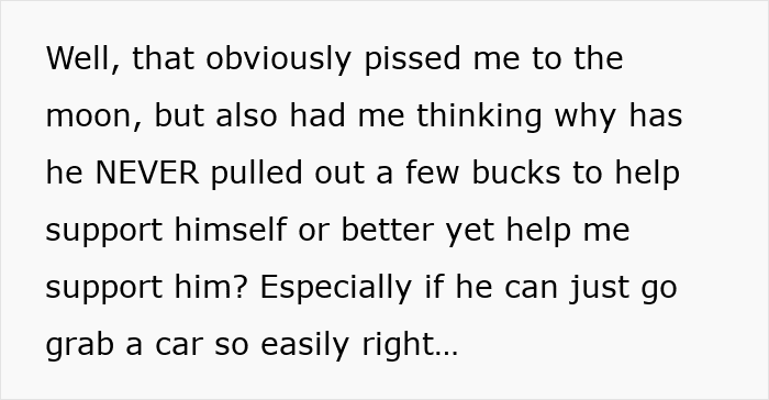 Meanwhile, he’s been unemployed for nearly a year. Furthermore, as it turns out, he has some savings from a previous settlement that he never used to support himself or his girlfriend.