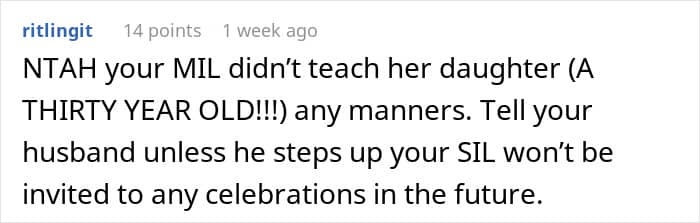 Commenters, however, overwhelmingly praised the mom for shutting down the SIL’s ‘main character’ behavior
