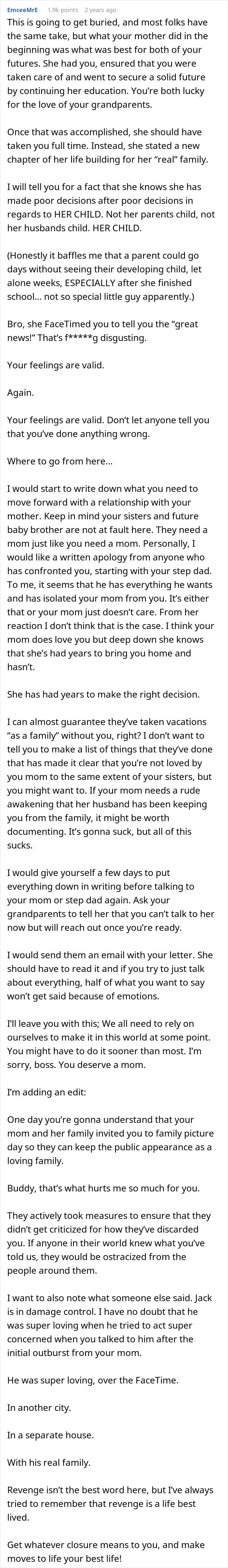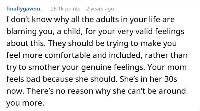 However, when he vented online, it didn’t take long for Redditors to side with him, as they could clearly see how unfair it was all for him. They said that his mom made a sane choice to leave him with her parents, so she could complete her education. However, not taking him back when she settled down with Jack was a big mistake on her end.