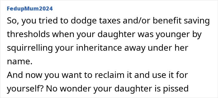 Netizens were divided about whether the girl should be angry with her mother for taking the funds or if she was too entitled. Sometimes, an inheritance like this can cause problems between parents and children because the kids may feel like they are owed the money. Knowing they’ll later get a sizeable amount without any effort might affect their motivation and effort.
