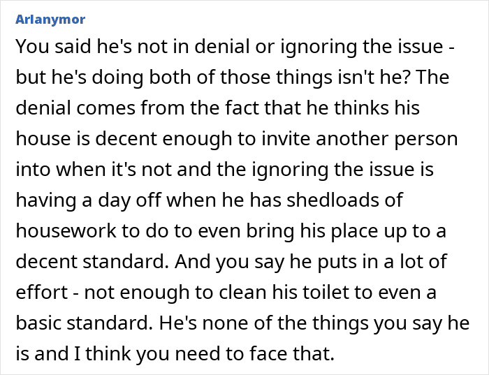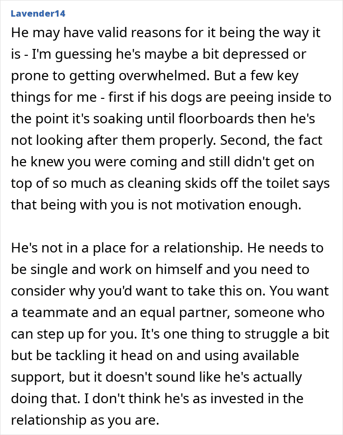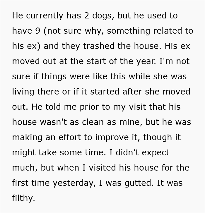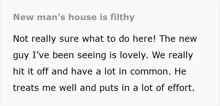 A woman asked the internet what she should do when she visited her boyfriend’s home for the first time and discovered that it was absolutely filthy and he seemed ok with it. Readers were quick to tell her this is a major red flag and most were surprised she wasn’t sure what to do with him.