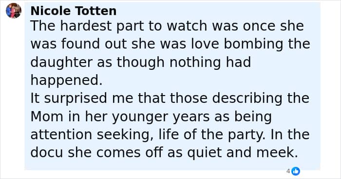 The former Beal City superintendent reflected on the case in the documentary. “I think it was a cyber-Munchausen’s case. She wanted her daughter to need her in such a way that she was willing to hurt her.”
