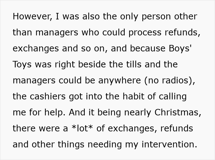 “Later, he took away my ability to do refunds and exchanges because I’d looked at the handbook and realised I should be on a higher wage to do them, but he never actually told me he’d done that. I went to help an already upset customer, and my logins weren’t working, which didn’t help the customer’s mood!” the author told We.