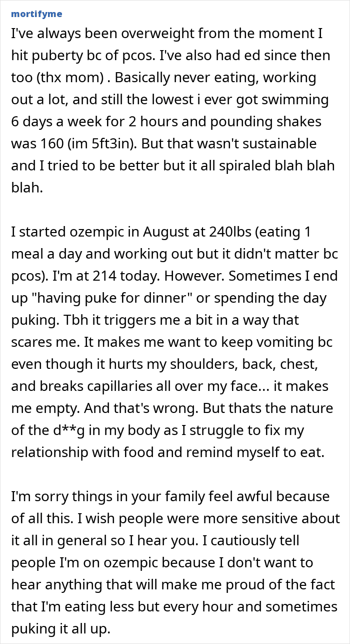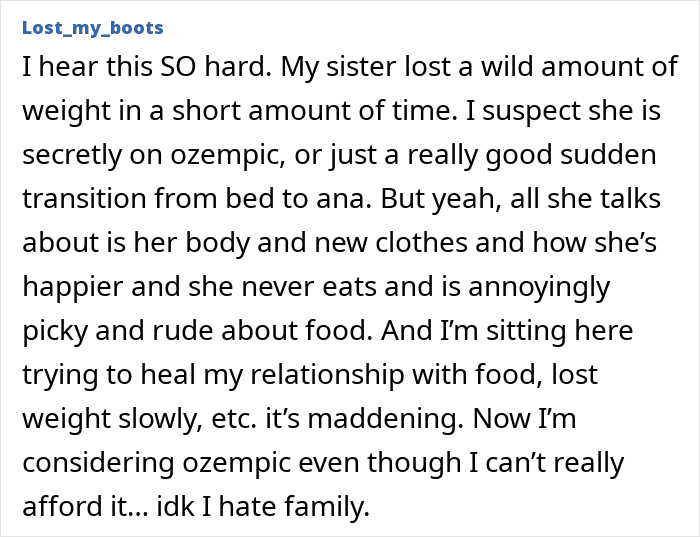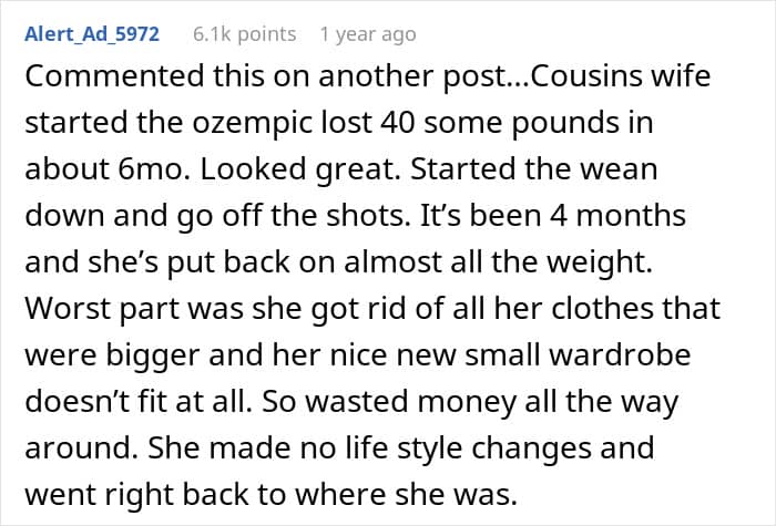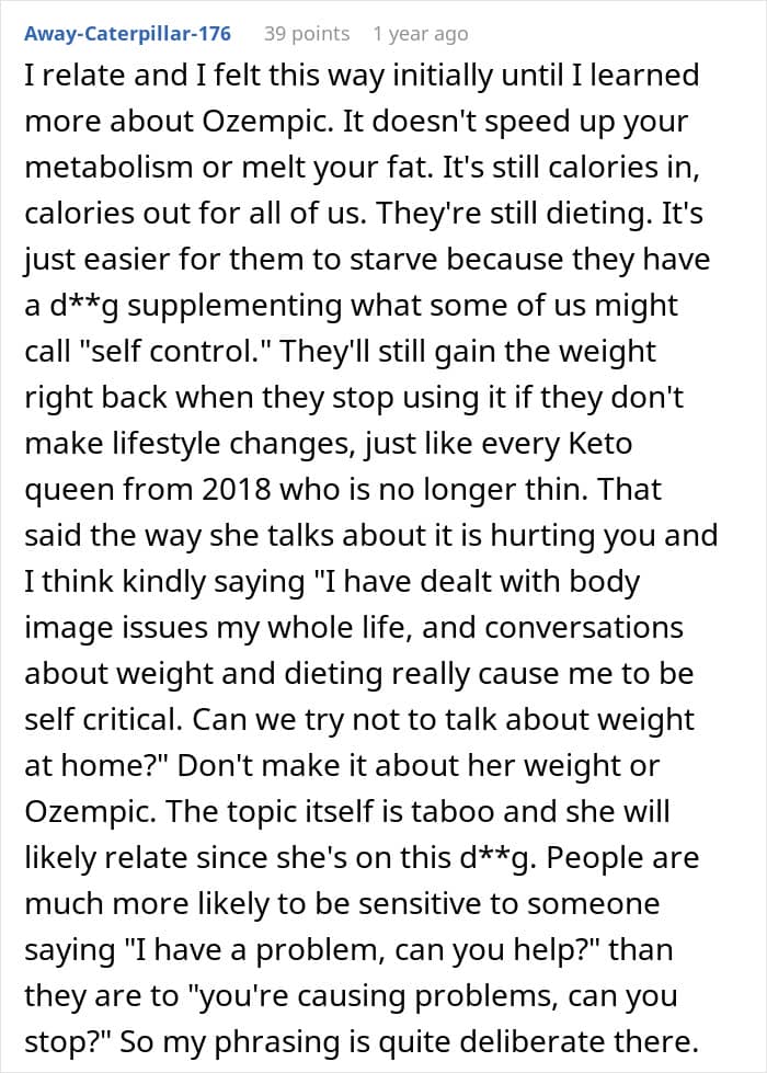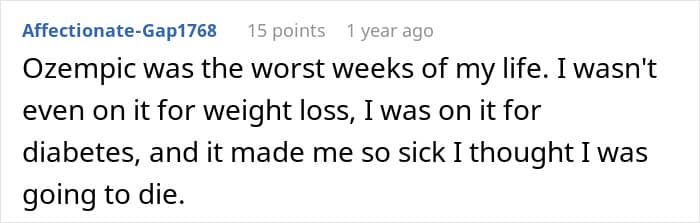 But we often only hear about how the medication has transformed people’s lives for the better. So today, we’re focusing on some of the downsides of taking Ozempic, particularly how it can impact a person’s relationships with friends and family. Individuals who have seen Ozempic use up close have been opening up on Reddit about how they’ve been affected, so you’ll find some of their brutally honest accounts down below.