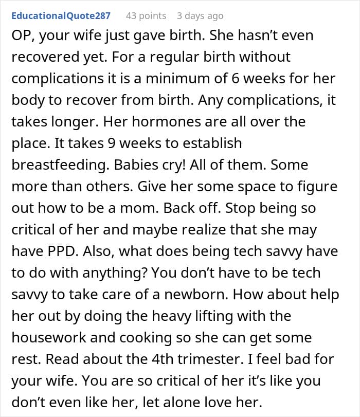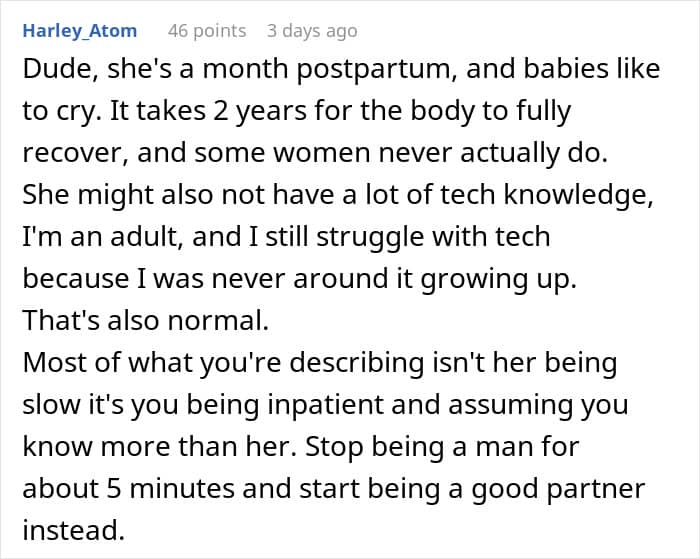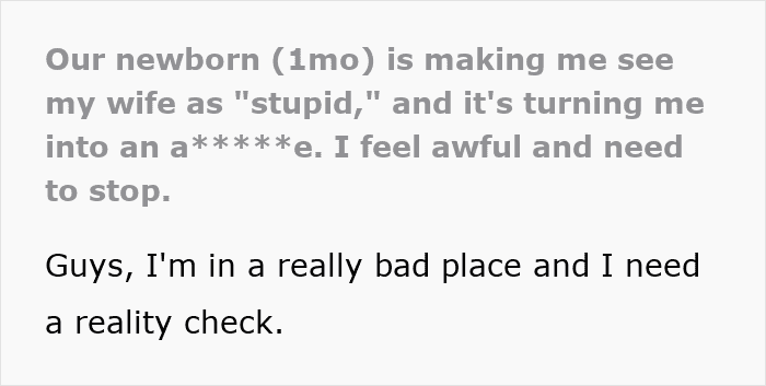 On r/TrueOffMyChest, a Reddit user known as Street-Level-7850 shared his struggles during this turbulent time, but they weren’t caused by the baby; rather, they stemmed from his wife’s difficulty caring for it.