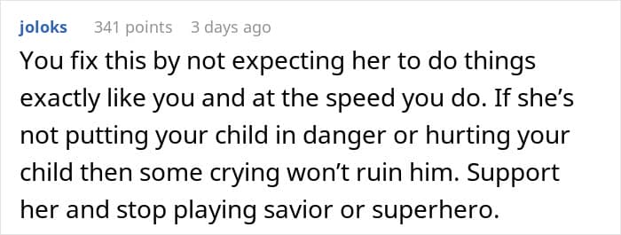 So, as difficult as it seems now, perhaps the dad should have more trust in his wife and the process?