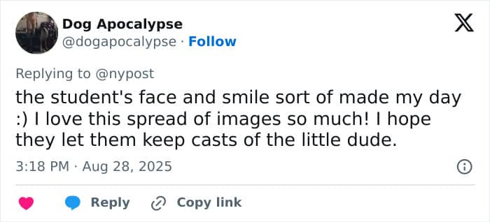 The student, Katie Joss, was excavating along a trench wall when the carving “stared back” at her, says the university. Images from the dig show the head adorned with curly hair and an amused smirk, seemingly unbothered by its missing nose. UHI archaeology lecturer, Sarah Jane Gibbon, called the discovery “such an exciting find” in a statement.