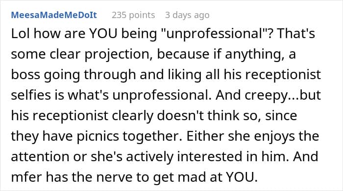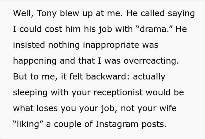 A woman asked the internet for advice after getting into an argument with her husband after she liked some of his receptionist’s selfies. As it turns out, he’d done the same thing and had been having secret picnics with her for weeks. We reached out to the woman who shared the post and will update the article when she gets back to us.