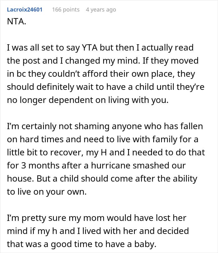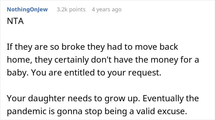 The woman’s parents are against her having a babyunder their roof because of the noise, disruption and chaos that comes with a newborn. But there’s another factor at play that many netizens have raised…