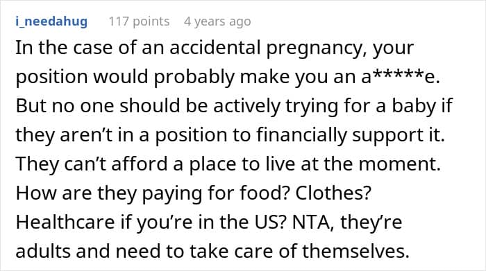 Babies are expensive. And if the couple is already struggling financially, are they really in a position to bring new life into this world?