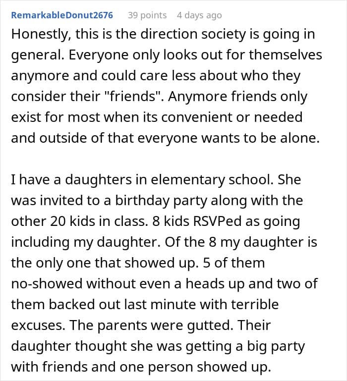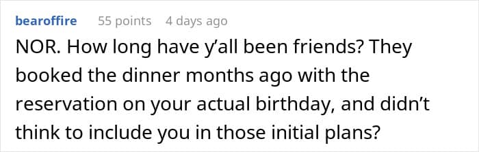 A woman asked if she was overreacting when she called out her so-called friends after they canceled on her birthday last minute. We reached out to the woman who shared the post via private message and will update the article when she gets back to us.