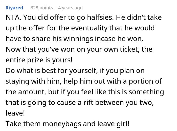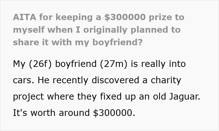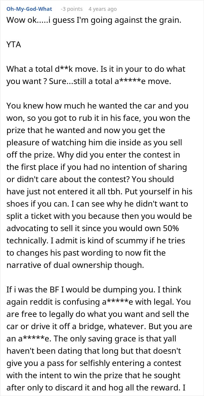 Take this story, for example. A Redditor’s boyfriend had his eye on a raffle for a luxury car worth $300K—but since he was broke, he couldn’t afford the $50 ticket.