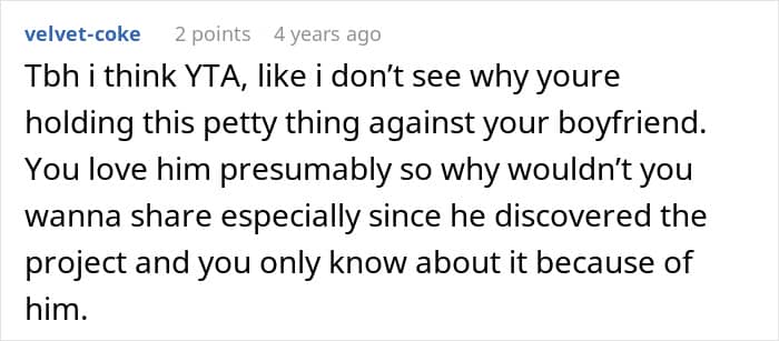 His girlfriend kindly offered to split it with him, but he declined. So she quietly bought one on her own.