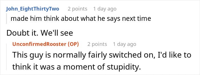 People in the comments, of course, praised the original poster for their resourcefulness and restraint, but suggested that the boss, even if their ego had gotten bruised, was unlikely to have learned the life lesson they had faced. At least, the personal experience of many commenters suggests rather the opposite…
