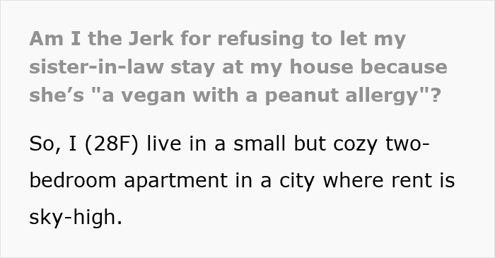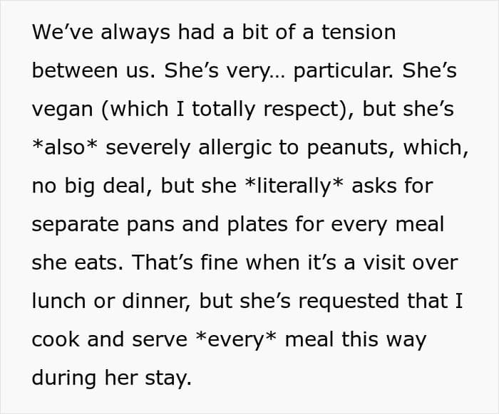 However, they’re never entitled to make things difficult for the people around them. It’s a problem this woman had to deal with when her peanut-allergic and vegan sister-in-law began making unreasonable demands for staying over.