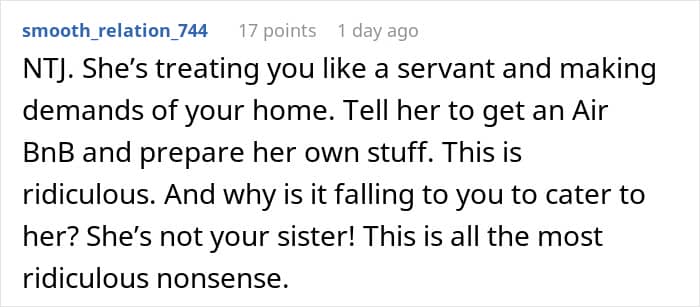 Most commenters sided with the author, with some blaming her husband for not taking the initiative to accommodate his sister