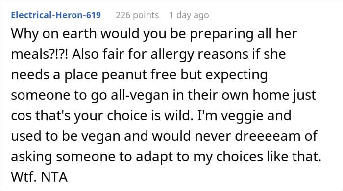 RELATED:A woman has been having trouble dealing with her sister-in-law, who is vegan and allergic to peanuts