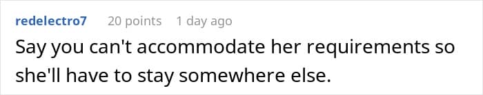 She refuses to accommodate the unrealistic requests, but wonders if she was too harsh to treat a family member this way.