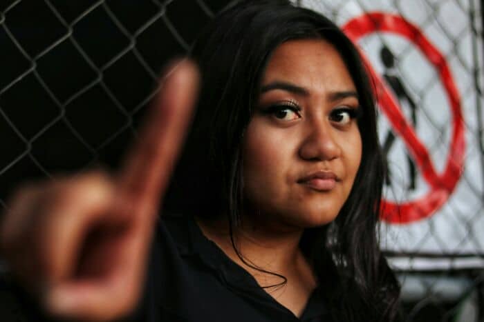 I simply don’t uncross my arms or remove my hands from my pockets etc, there’s nowhere for it to go and they tire of holding it up infront of me very quickly lol.