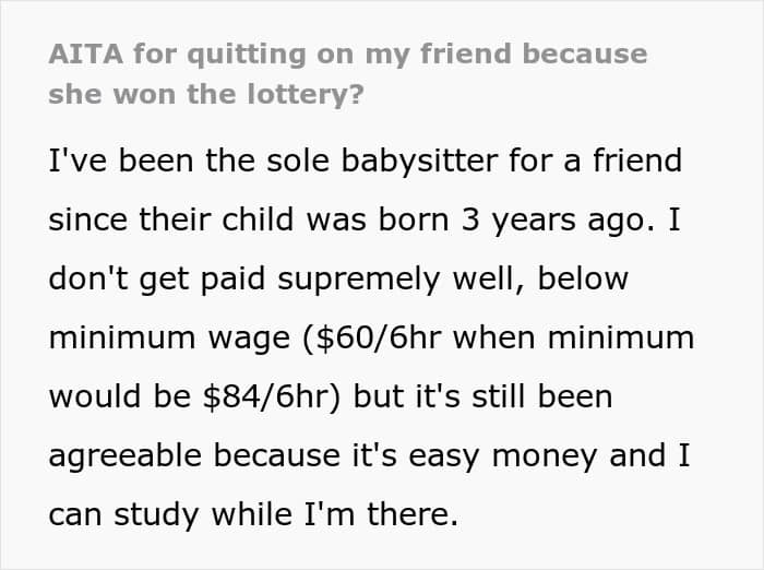 One anonymous babysitter shared how their friends couldn’t pay them minimum wage even after winning the lottery