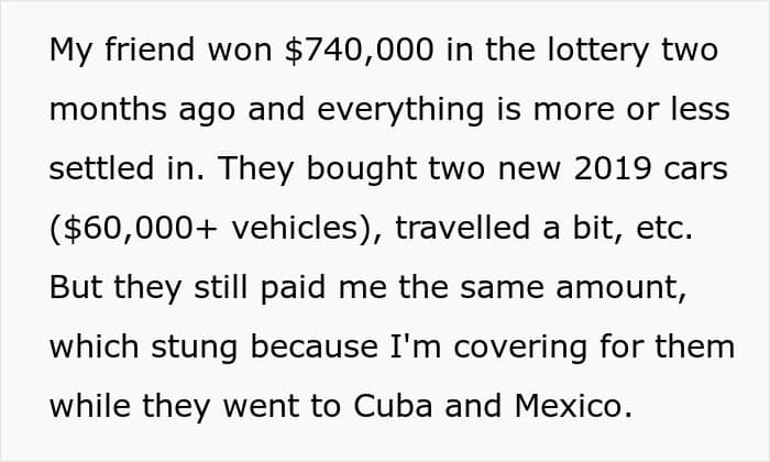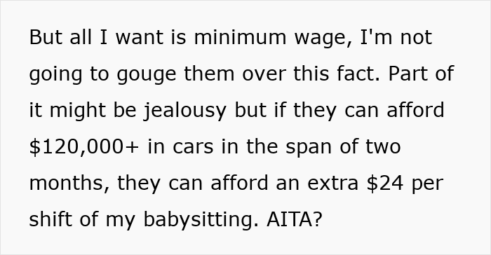 Babysitter u/Own-Syllabub went viral after venting to the AITA online community about how they kept doing favors for their friends, and how unfairly they treated them. They revealed that the couple won the lottery. However, they were unwilling to pay them even minimum wage, despite splurging left and right. You’ll find the full story and the internet’s reactions below.
