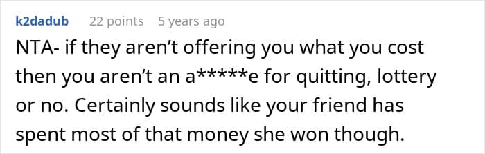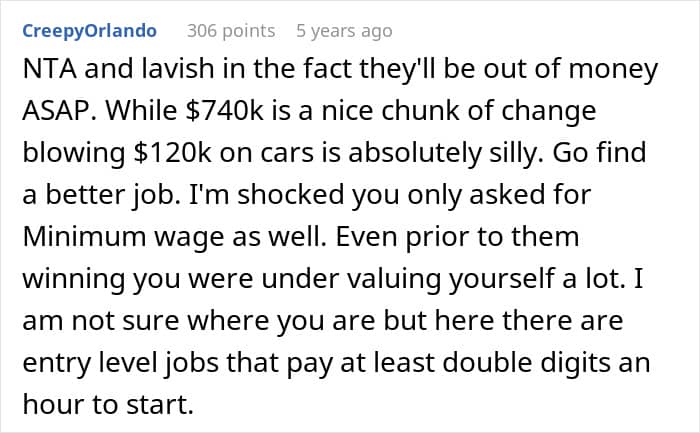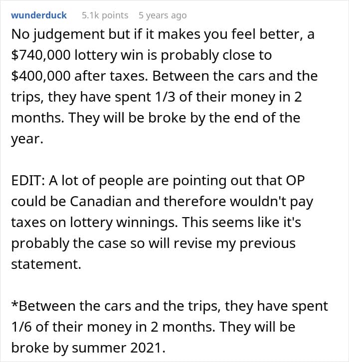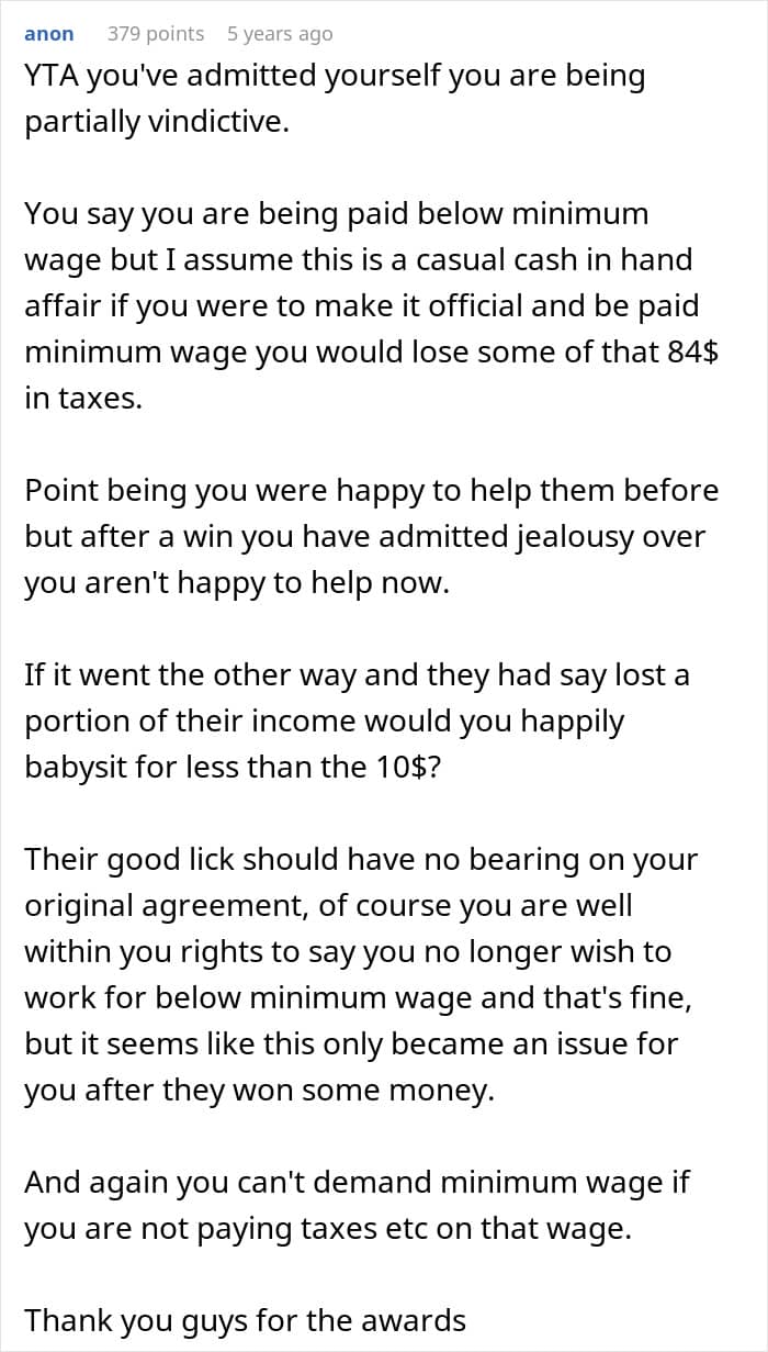 Most readers thought that the babysitter was in the right, and they were open with their criticism of the lottery winners