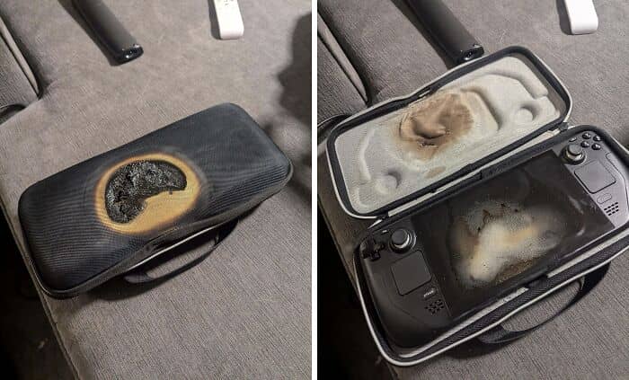 #38 My Wife And I Went On Vacation And She Asked My Brother-In-Law To Feed The Turtle. He Set The Heat Lamp On Top Of The Steam Deck In It’s Case For Some Reason, And Forgot To Put It Back